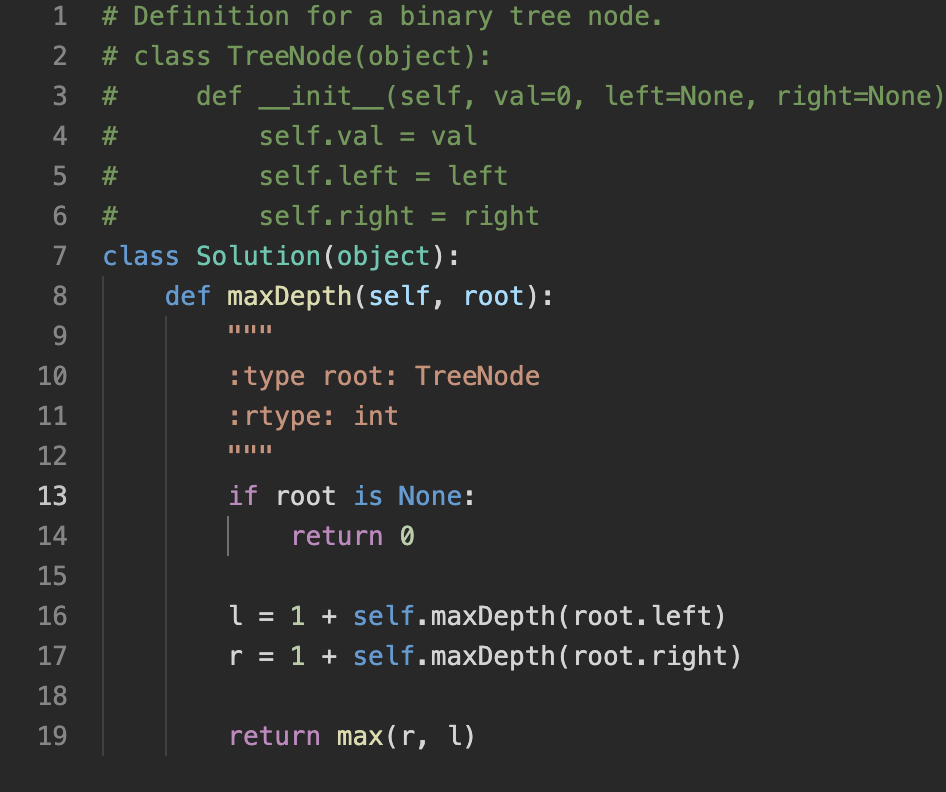 This is the method using recursive. We are going down to tree, adding 1 until the depth of tree.