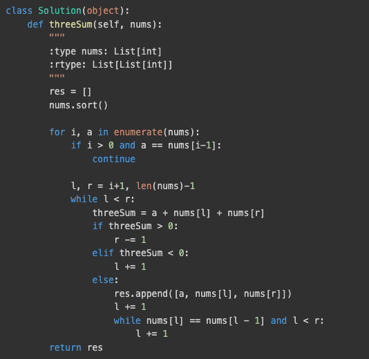 elif threeSum is smaller than 0, we should move l pointer to right.
