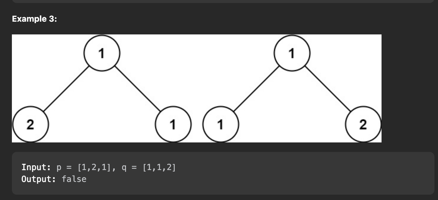 In this problem, we are gonna check the identical structure and their values. Two tree must the same tree structurely.