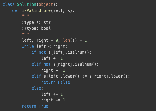 isalnum() makes sure the char is whether char or not. If one of those is not char, then we move the pointer.