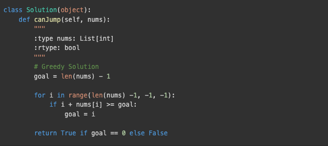 From the last value, we are gonna update the goal pointer when i + nums[i] >= goal.
