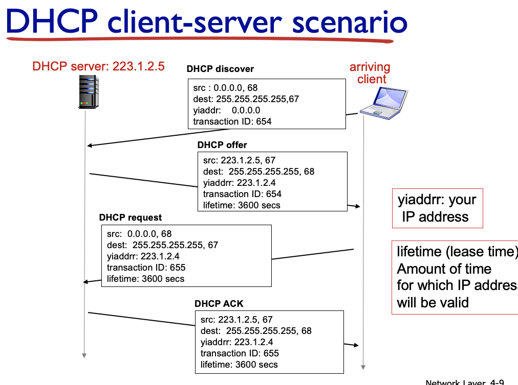 - Benefits: allow host to dynamically obtain its IP address from network server when it joins network.