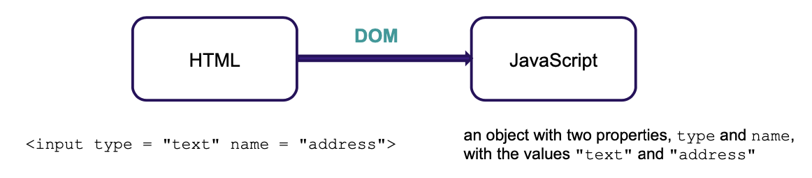 What I understand is that HTML properties can be used as values in Javascript. In this picture, we can see the "type" and "address" are the values in Javascript.