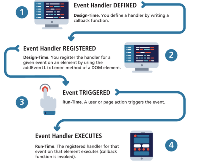 When we defined the event handler and registered it, we includes the event trigger in the code.
