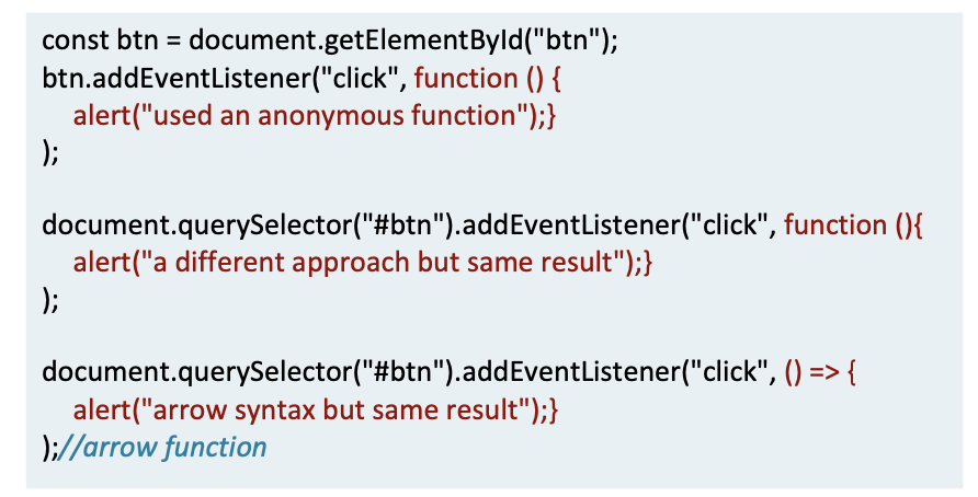 Sometimes, people use anonymous function passed to addEventListener() like below: