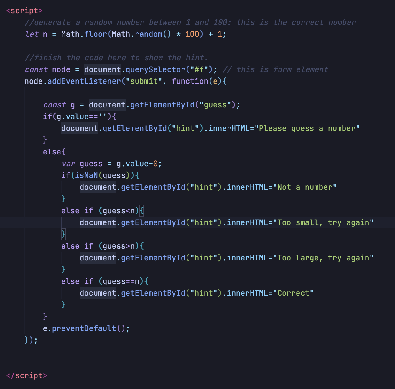 const g is the value we put on html input. If we put nothing and submit, then we should show the message "Please enter a number."