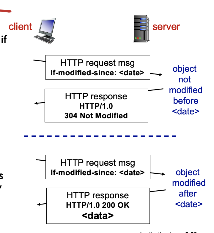 - Cache: specify date of cached copy in HTTP request. --> If-modified-since: <date>