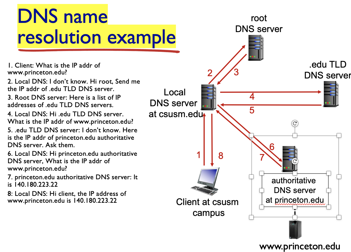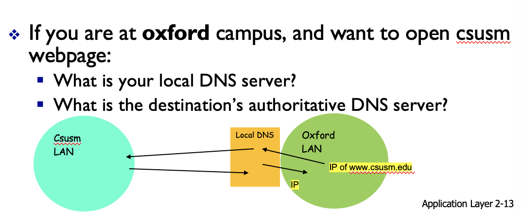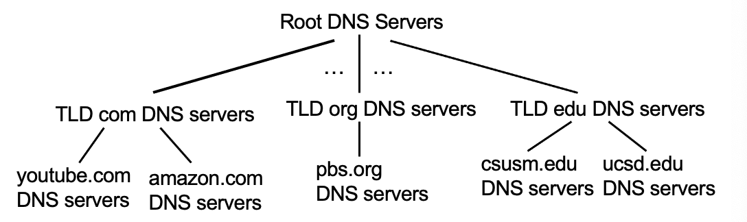 - Oragnization's own DNS server(s), providing authoritative hostname to IP mappings for organization's named hosts.