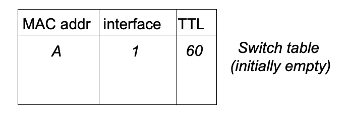 - When frame received, swich learns location of sender: it is reachable through the incoming interface.