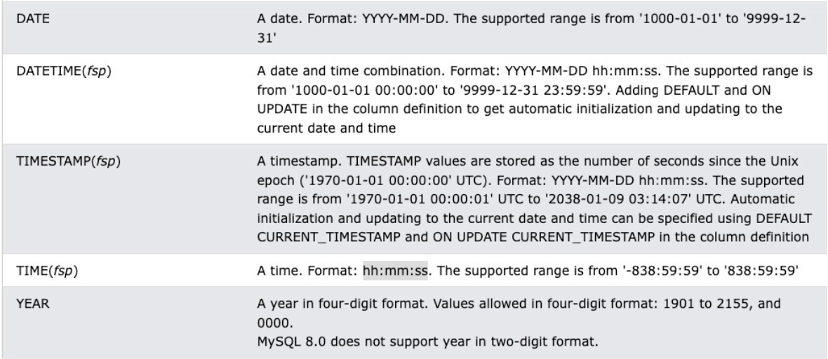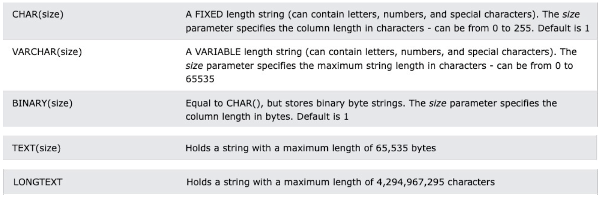 SQL: A table is the principal unit of storage in database. It is a two-dimensional container for data that consists of records (rows); each record has the same number of columns. These columns are called fields, which contain the actual data. Each table will have a primary key -- a field (or sometimes combination of fields) that is used to uniquely identify each record in a table.