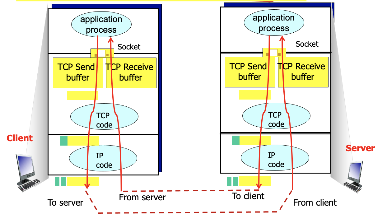 Socket is like the door. When client estabish by sending SYN to server, and server response with SYNACK.