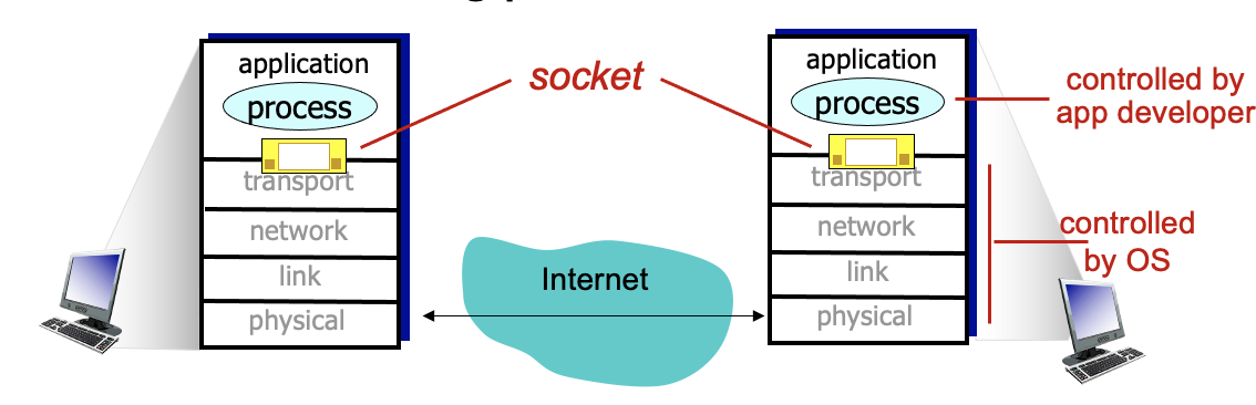 - Sending process relies on transport infrastructure on other side of door to deliever message to socket at receiving process
