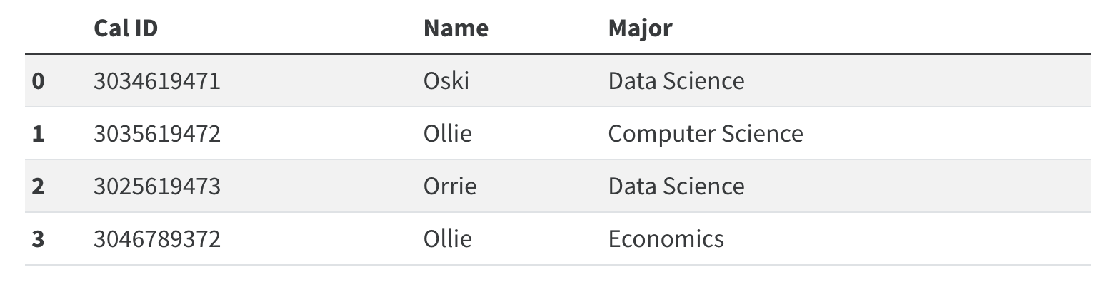 - Nominal qualitative variables: categories with no specific order. For example, someone's political affiliation or Cal ID number.