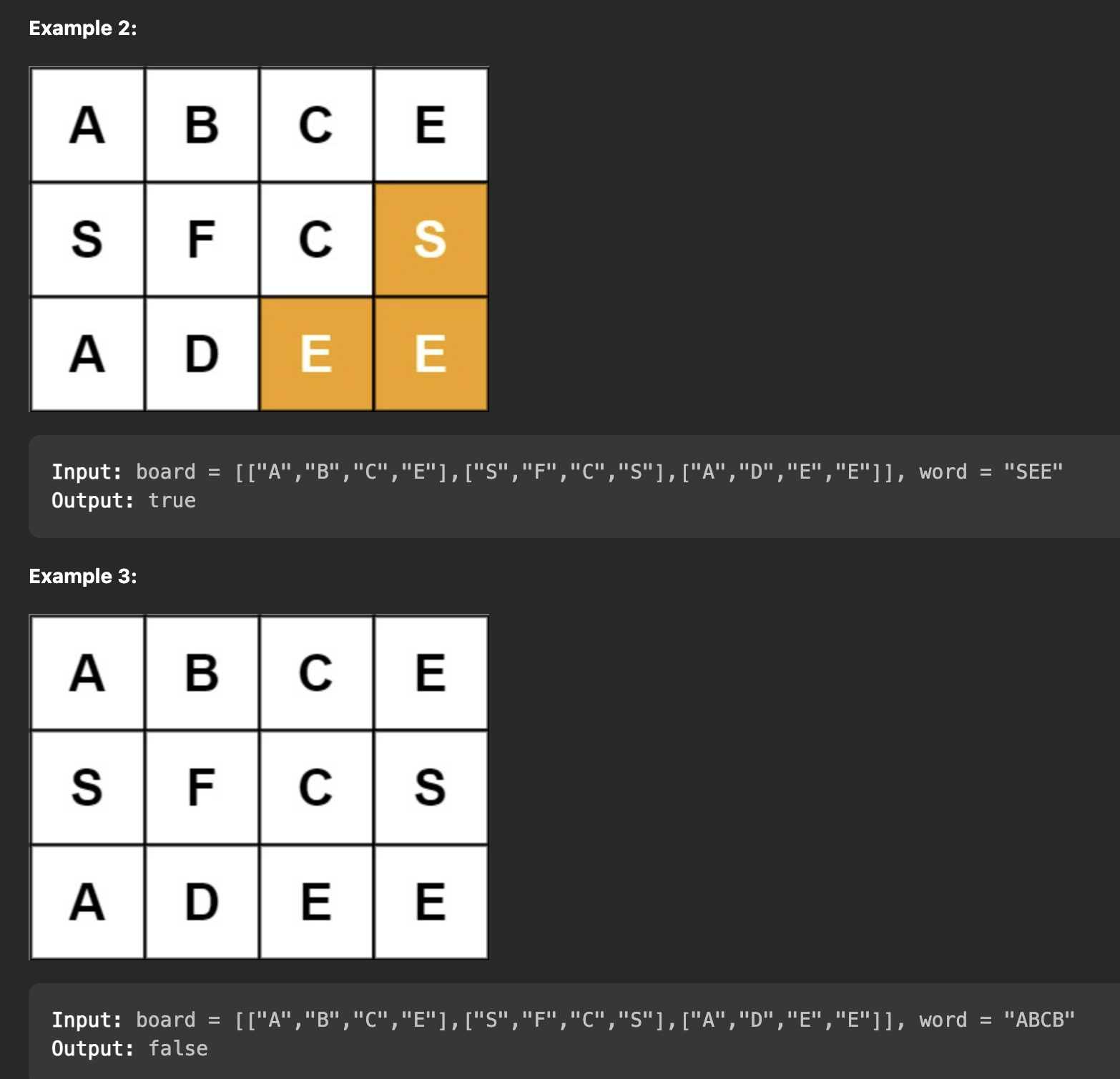 But, if the search out of range, no word in matrix, and search the same cell again return false. So, we can stop the function and return false while recursiving.