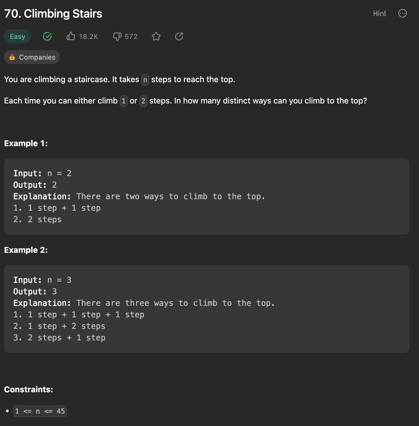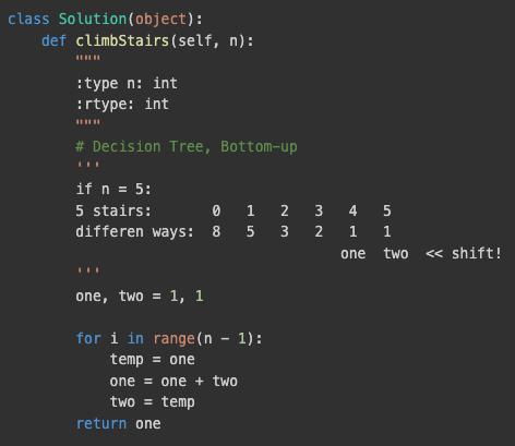 In my code, we set (n-1)th stair as "one", and nth stair as "two."